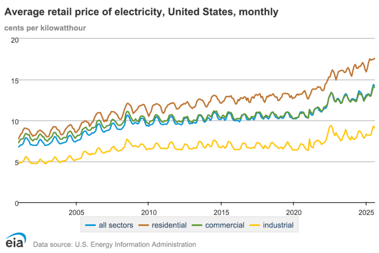 America is on the cusp of the biggest power-hungry decade in a generation. Federal forecasters expect record electricity demand in 2025–26, even as oil producers are carefully managing output. Yet the main reason your bill is climbing isn’t just regional differences, it’s rules. A thicket of tariffs on essential hardware, marathon permitting timelines, and clogged grid interconnection queues layer a “policy premium” onto every kilowatt-hour. In a textbook supply-and-demand sense, demand is racing ahead, driven by AI data centers and electrification, while policy squeezes supply. Worse, Washington keeps “choosing” technologies, inviting regulatory capture and raising costs for everyone. If we want the AI era to benefit households instead of draining their wallets, we need neutral, pro-entry rules that let the cheapest reliable electrons win.